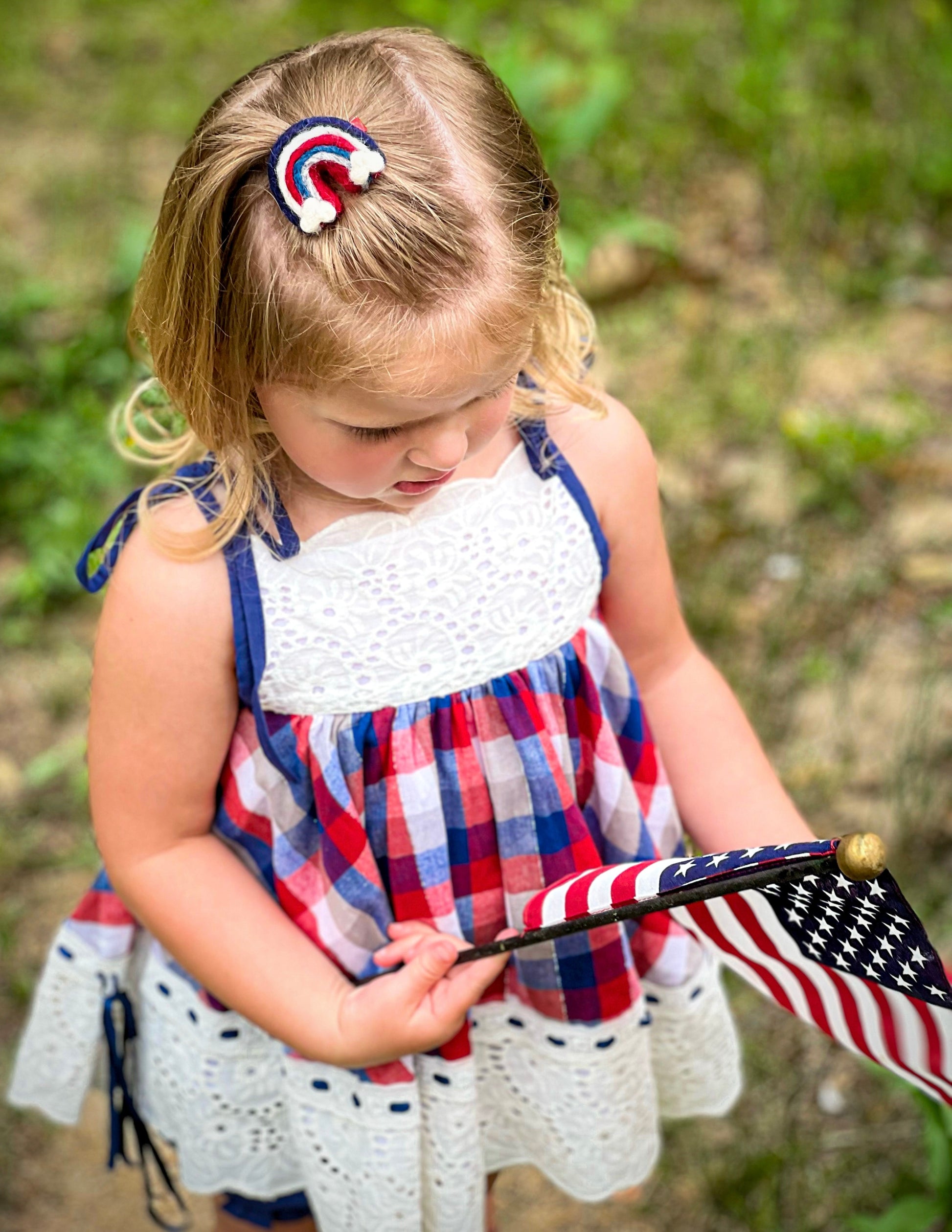This perfect felt rainbow is magical in every way. The rainbow is backed with a clip which can be worn alone, or combined with another bow. We have paired it perfectly with the American Cutie Bow (Shown in picture is a 4in Luxe on model).