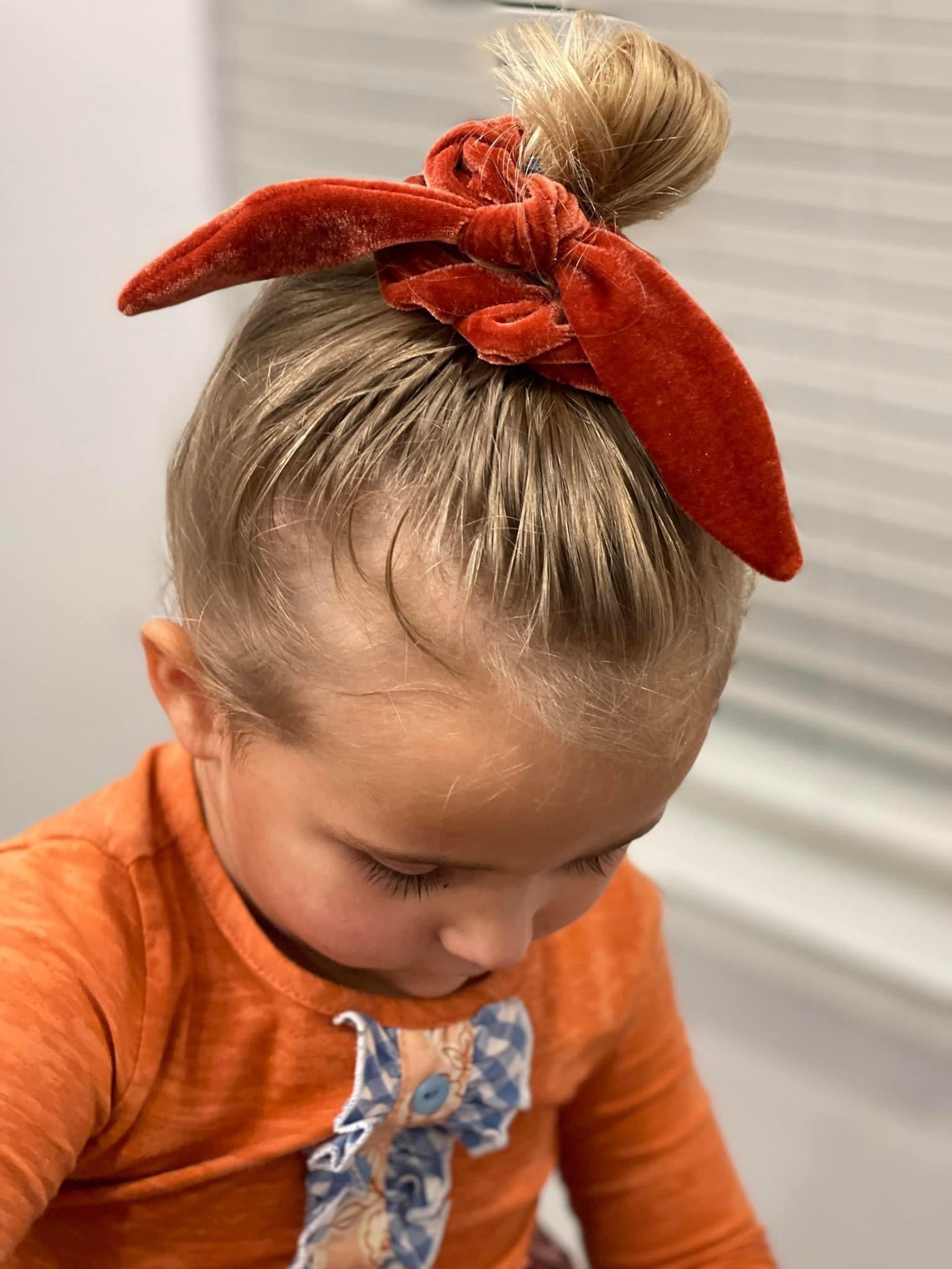 Our hand tied bows, detachable bow scrunchies and bow headbands have a practical design for frequent use with ease and grace. The tie feature on the hair bow allows for the clip to be switched to wear on the right or the left at anytime for versatility. The tie feature on the bow scrunchie and headband is detachable and allows for the bow to be tied onto another rubber band two get two uses out of one!