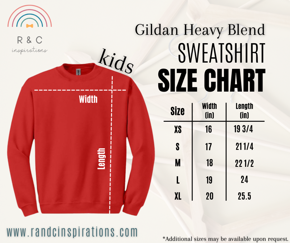 • Sweatshirts are YOUTH, UNISEX Gildan brand